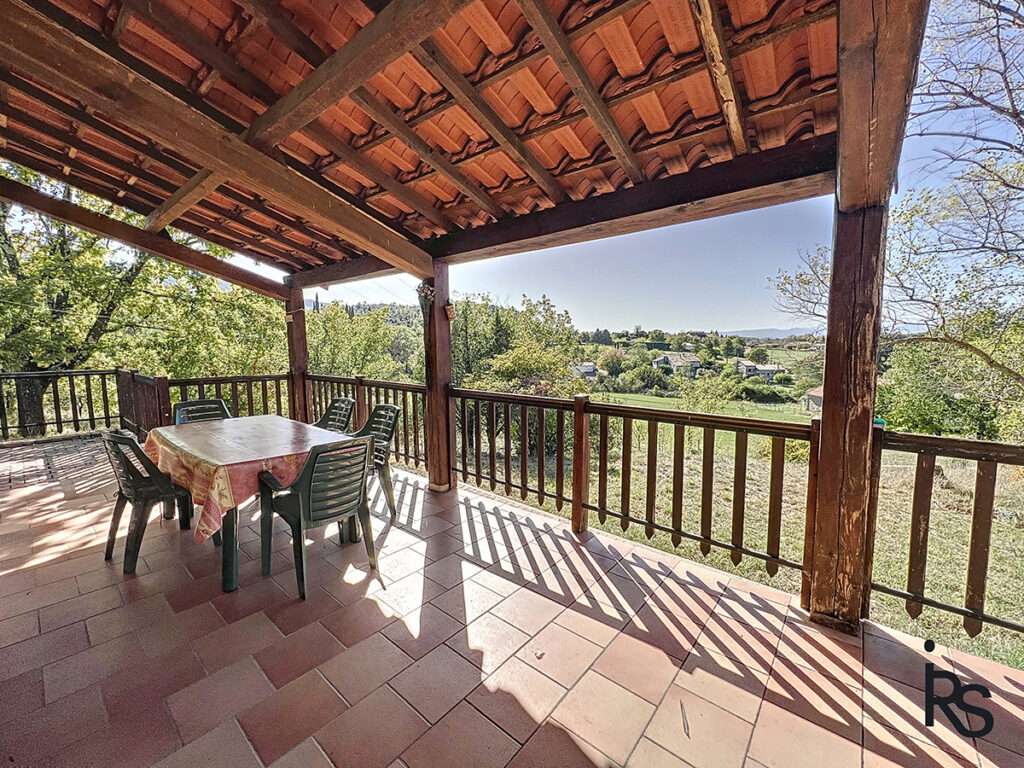 A une dizaine de minutes de RUOMS avec toutes les commodités, cette villa datant de 1997 bénéficie d’un bel emplacement avec un grand terrain en 3 larges terrasses, avec une vue dominante sur un paysage champêtre et les montagnes du Parc Naturel des Monts d’Ardèche au loin.