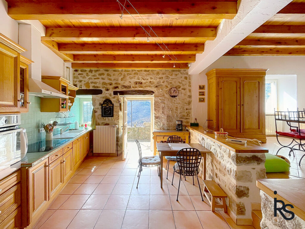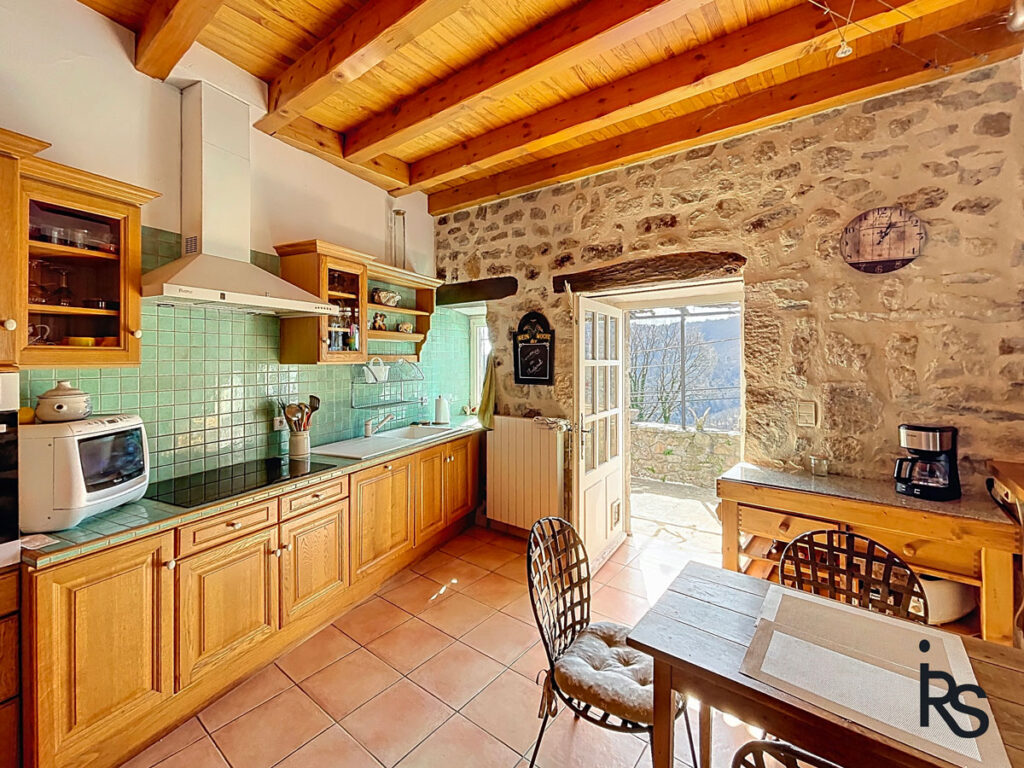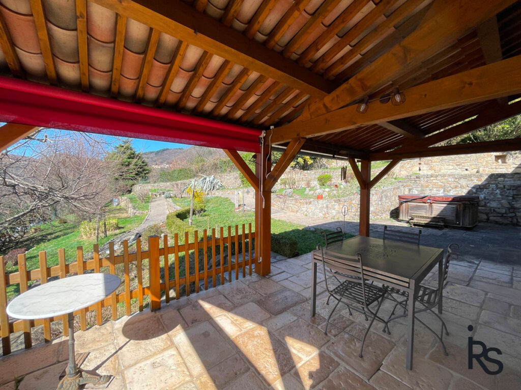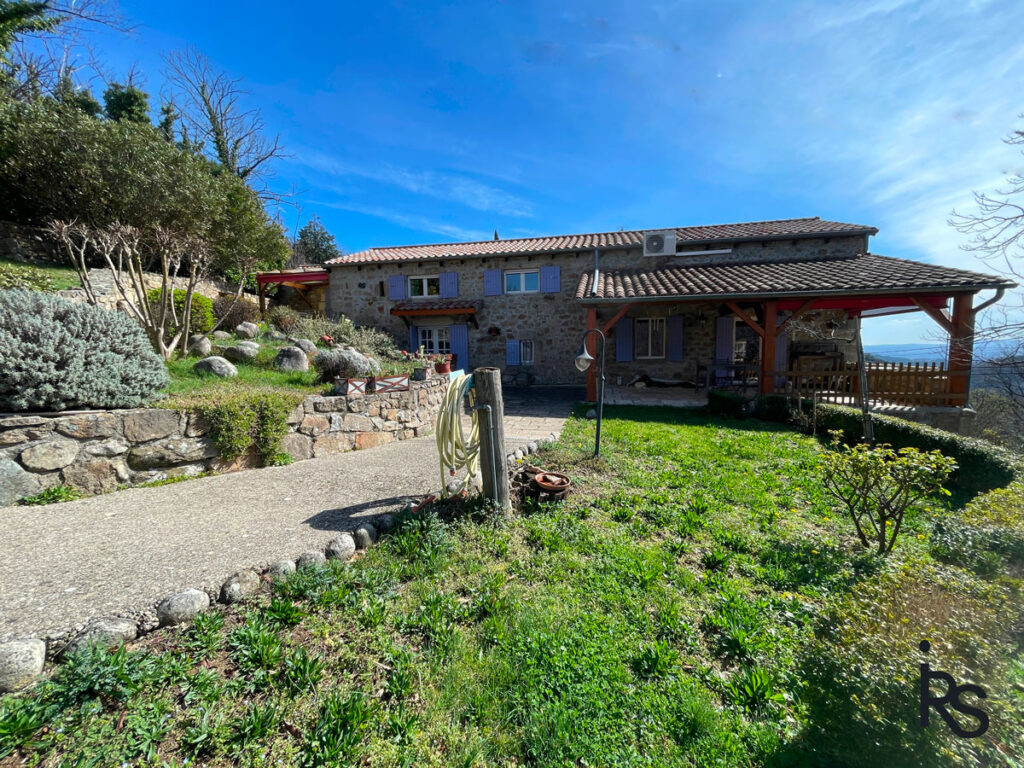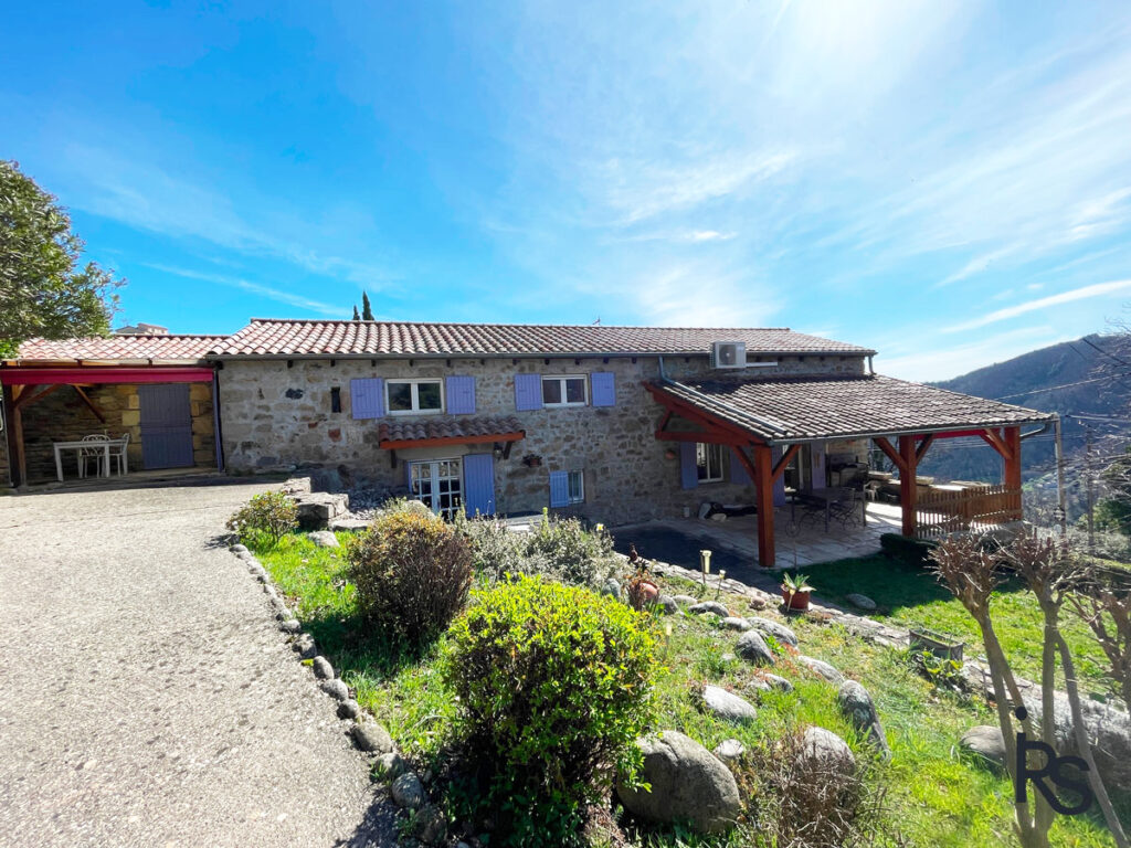A 15 minutes de VALS LES BAINS, en bordure d’un hameau, une maison en pierre rénovée en demeure de charme confortable de 133 m2 habitables avec un jardin paysagé de 1865 m2 et un jacuzzi, une ancienne grange à aménager sur deux niveaux (50 m2). La maison comprend un salon avec cheminée, une cuisine dinatoire et équipée, 3 chambres dont une en suite avec salle de bains, une salle d’eau, 3 WC, buanderie avec salle d’eau, cave, et garage. Chauffage central au fioul, climatisation réversible, fosse septique, réservoir d’eaux pluviales. Fibre optique disponible. Toitures de 2017.