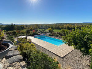 40 minutes driving from the A7 highway, in South Ardeche, close to a lively village without close neighbors, a former winegrowers farm with 355m2 living area, inner courtyard, terraces with overlooking views. Surrounded by 4980m2 garden with a heated swimming pool (shower, spa, sauna). this property benefits of an extra cottage (6/8 persons) and 4 independent bedrooms with bathrooms (B&B). The main house comprises a sitting room, a lounge with fireplace, a dining room with fitted kitchen, a study room, 4 bedrooms, a bathroom, 2 toilets, a 74m2 garage-workshop, a 33m2 pantry with summer kitchen, a 82m2 wine cellar. Central heating on gas. Septic tanks. Conveniences at 5 minutes driving distance.