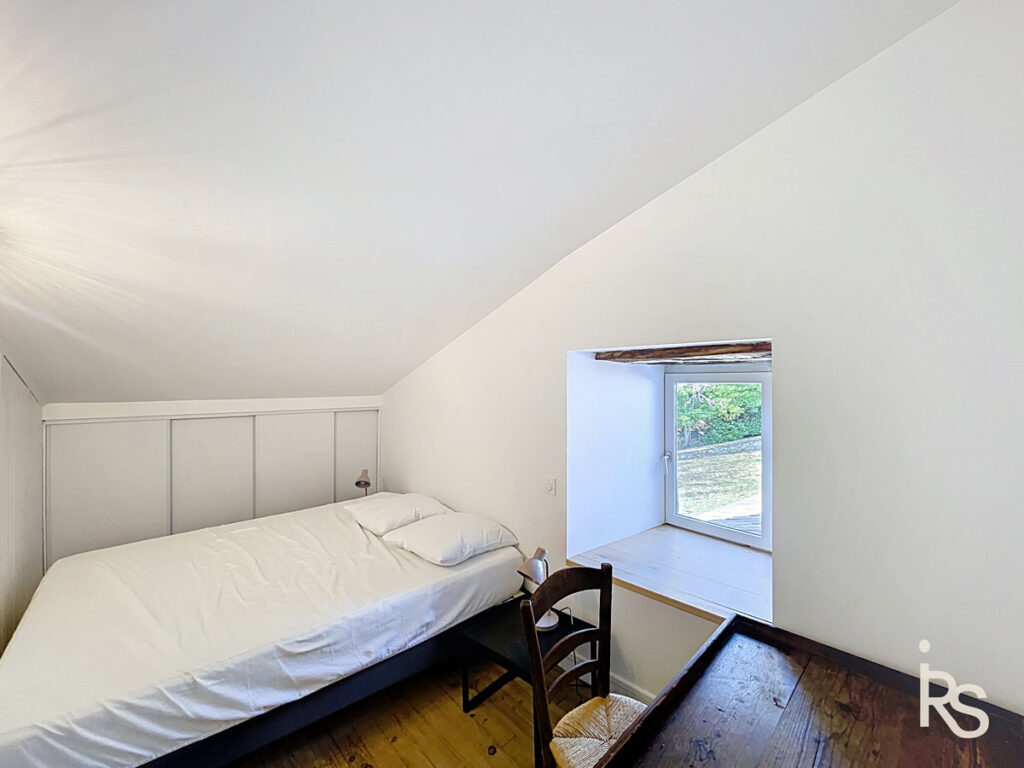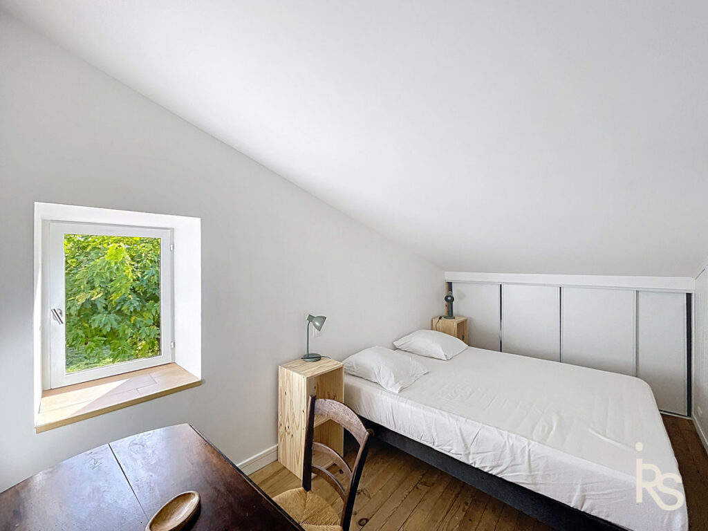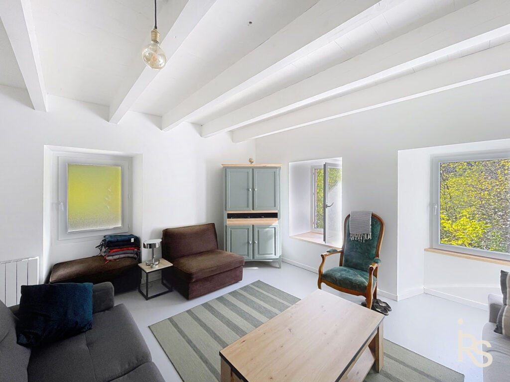 The entrance to the house, via a pleasant partially covered terrace, opens onto a 37 m² living room with a lounge area lit by windows overlooking the view and equipped with a contemporary kitchen. On the same level, a small hallway leads to a 4.75 m² shower room with a laundry area, a separate WC and a French window leading to the garden.