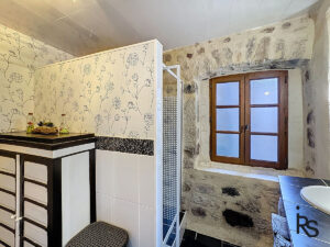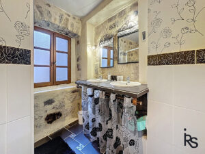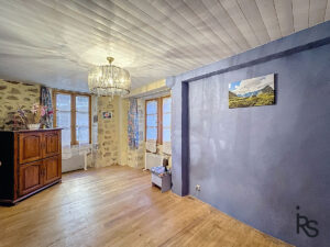 In the heart of the cobbled streets of the old village, the entrance of the house is on a small square. We enter directly into the 29.86 m² living room with a fitted kitchen area and a fireplace with insert. The first floor comprises a 16.32 m² bedroom, an 8.04 m² shower room and a separate toilet, and the second floor has two bedrooms measuring 16.73 m² and 9.08 m².