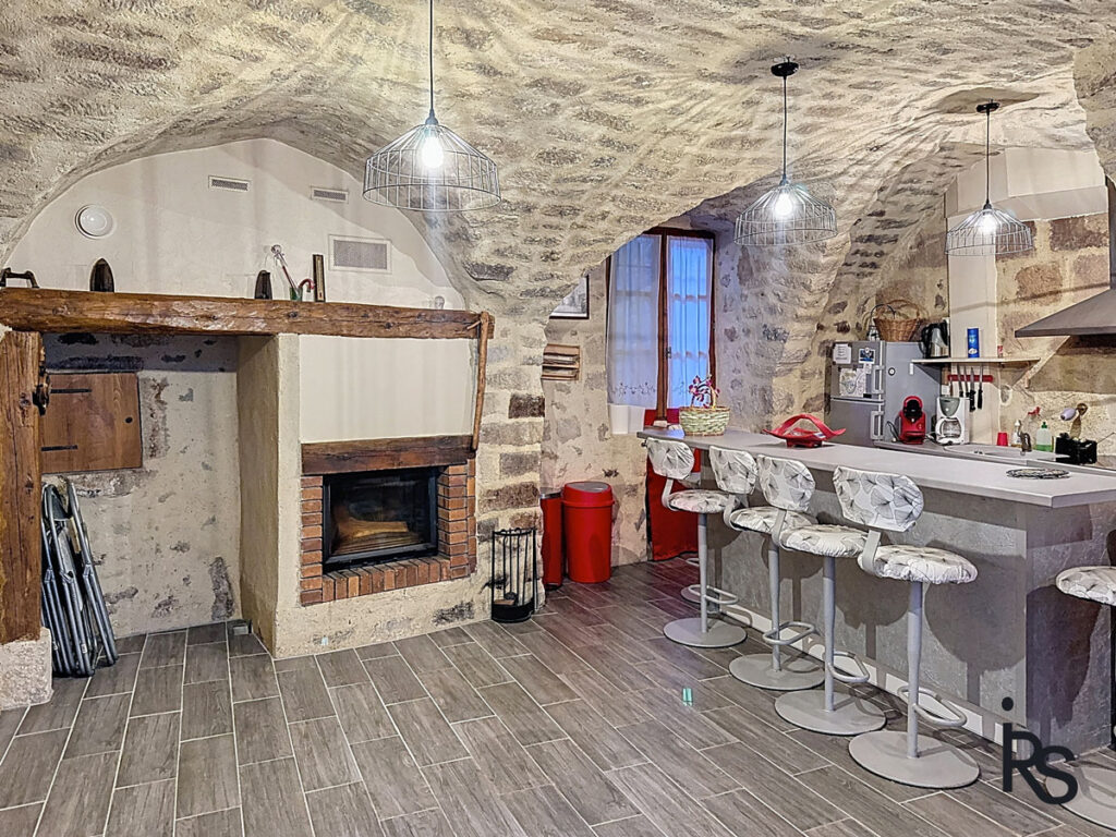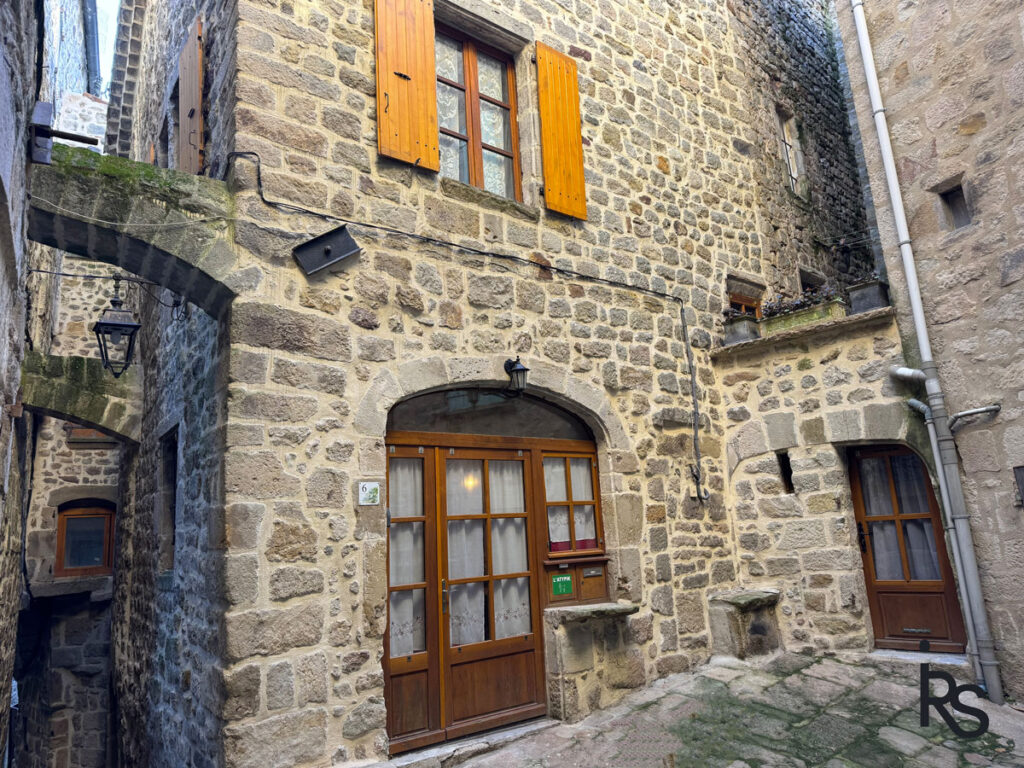 LARGENTIÈRE: a 75.8 m² village house on three levels, located in the heart of the medieval village, comprising on the ground floor a living room with a fitted kitchen, a cellar, and a laundry room accessible from the outside; on the first floor, a bedroom, a shower room, and a toilet, and two bedrooms on the second floor. Fireplace with insert, electric radiator. Mains drainage.