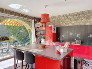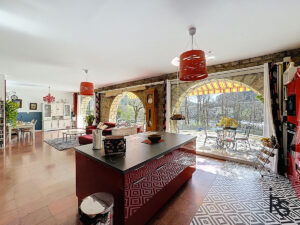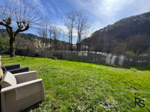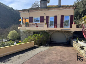 VALS-LES-BAINS AREA: a typical 1950’s house offering 250 m² of living space on a private, wooded plot of 1,830 m². This house comprises, on the ground floor, a kitchen, a dining room, three bedrooms with a shower room and a separate toilet; one level below, it comprises three bedrooms and two shower rooms; on the garden level, there is a spacious living area with a fitted kitchen opening onto the garden and offering views of the river. Garage, utility room, swimming pool, Swedish sauna. Mains water, right to draw water from the river. Mains drainage. Fibre broadband.