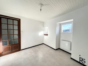 De tweede unit van 81,45 m2 is bereikbaar via een paar trapjes als we vanuit het noorden het gebouw omzeilen. Het opent in een verwarmde serre en woonkamer van 18,24 m2 met een badkamer van 3,26 m2 en een toilet. Een kleine trap daalt naar de binnenplaats op het zuiden. Op hetzelfde niveau ligt de ingerichte keuken van 14,25 m2 uitgebreid met een eetkamer van 25,95 m2 en een slaapkamer met kast van 17,7 m2.
