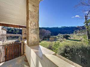 Een prachtig landgoed van 6,34 ha in één stuk met een kleine boomgaard van olijfbomen, weiden, bossen en een meer gevoed door een bron, waar de boerderij op uitkijkt. De historische ingang van het huis is via een binnenplaats die leidt naar de gewelfde kelders van een totaaloppervlakte van 212,20 m2 en een grote garage van 79 m2. Via een trap naar een breed terras dat langs de west-en-zuidgevels loopt, in de schaduw van een groot prieel met een klimplant van Virginia, de hoofdwoning van 138,40 m2 opent op een ingerichte woonkeuken van 18,59 m2. Deze kamer communiceert met een woonkamer van 21,84 m2 met mooie oude versierde tegels. Een lange gang leidt naar 3 slaapkamers van 18,02 m2 – 11,80 m2 en 12,76 m2, een badkamer van 5,24 m2, een toilet en een berging van 7,79 m2. In de gang komt een deur uit op een betegelde trap naar een grote slaapkamer van 21,95 m2 op de 2e verdieping waar ook 2 converteerbare zolders van 42,5 m2 en 38,5 m2 liggen.