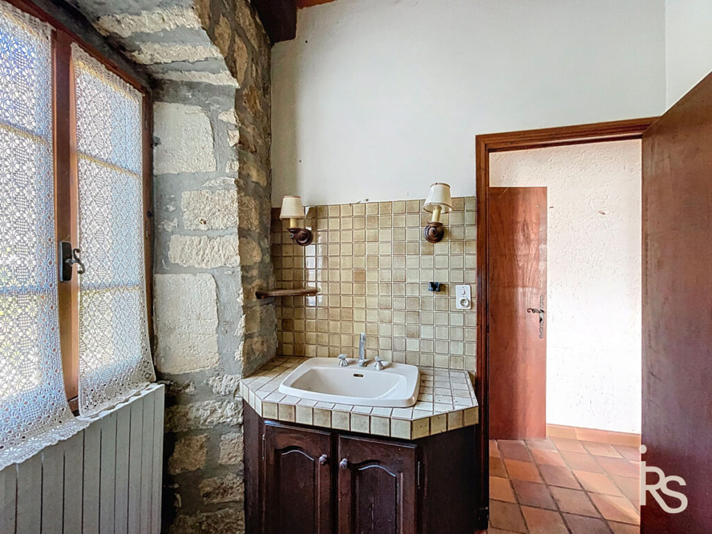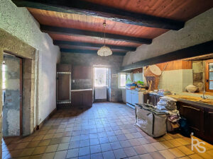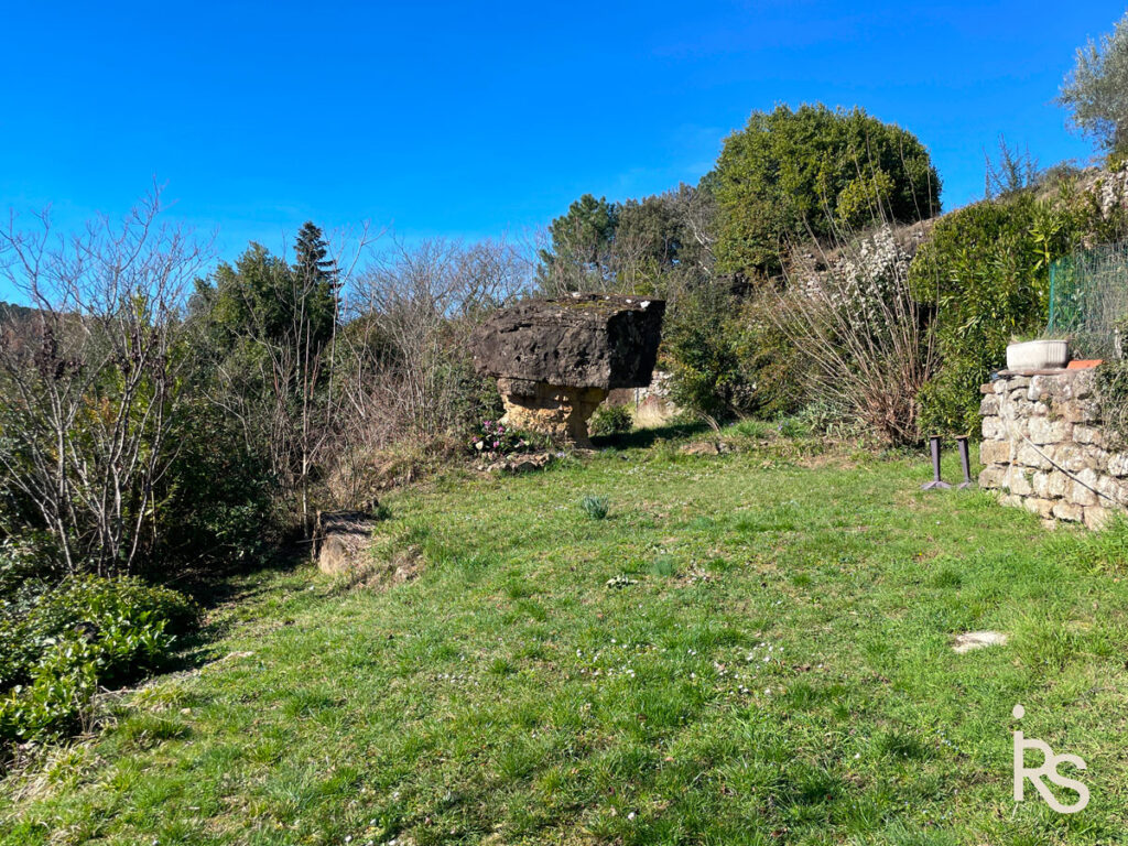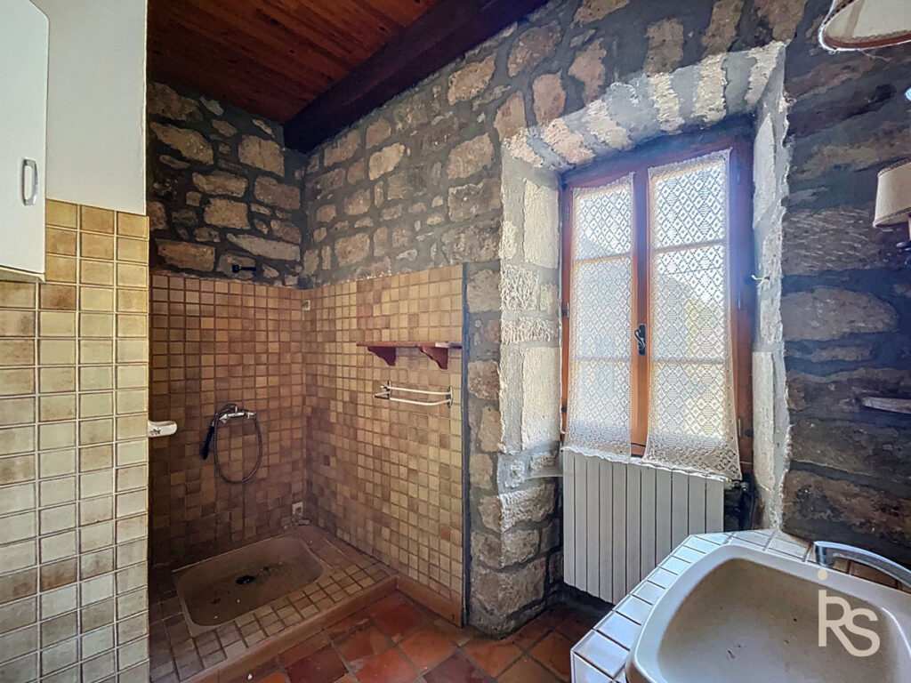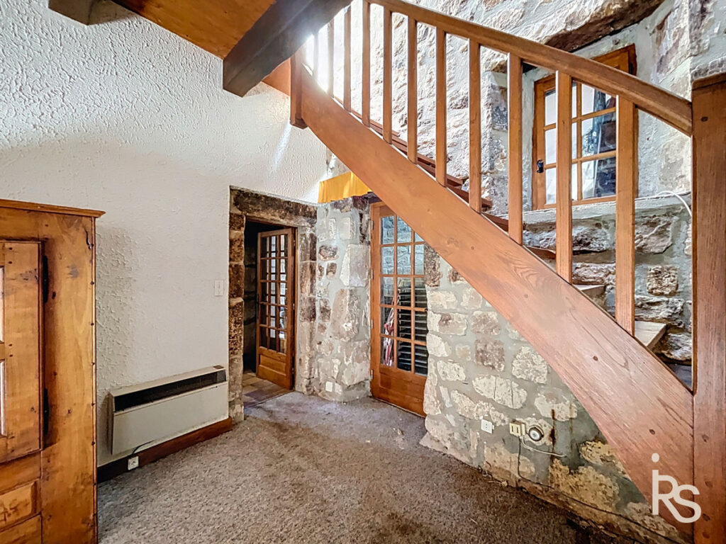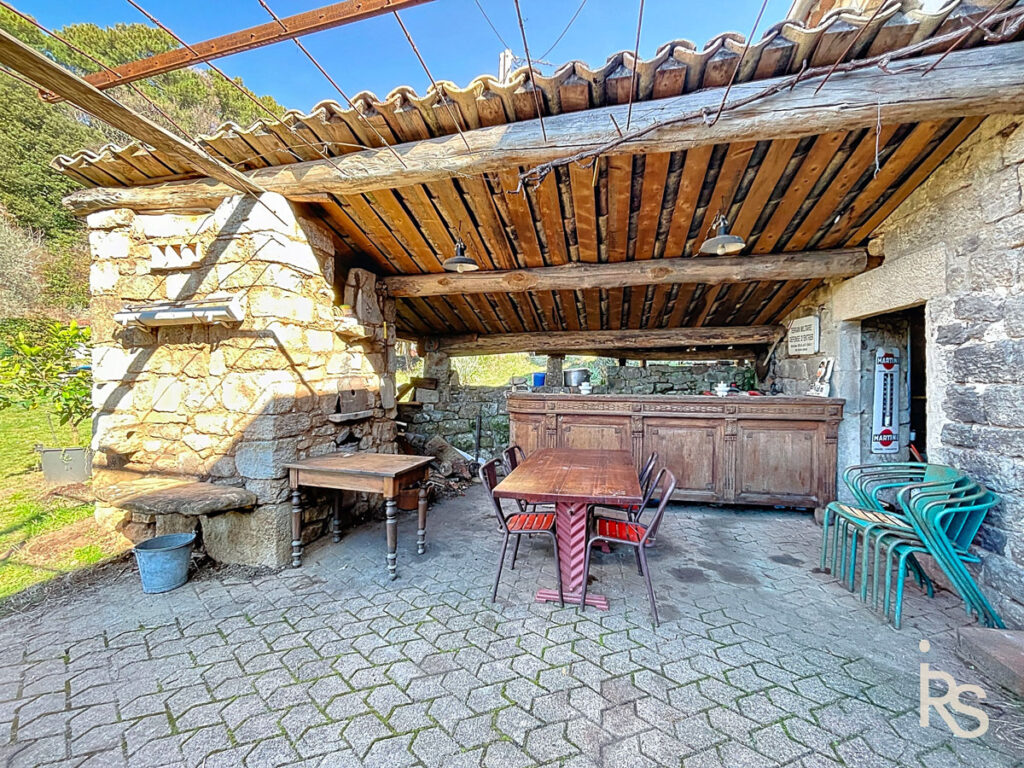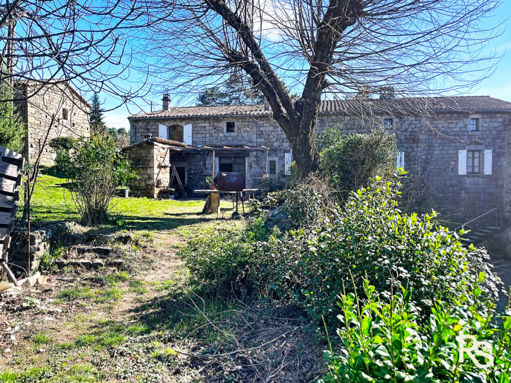 10 minuten rijden van LARGENTIERE, in een rustig gehucht met een prachtig uitzicht op het zuiden, een ensemble van twee oude stenen huizen die volledig moeten worden gerenoveerd, met een woonoppervlakte van 221 m² en 5,99 ha grond, waarvan 3440 m² in de directe omgeving met een zwembad. Het hoofdgebouw van 172 m² is gebouwd op 5 kelders en een werkplaats. Het bestaat uit een woonkamer met open haard, een woonkeuken, drie slaapkamers, een badkamer, een toilet en op de bovenverdieping een grote mezzanine, een zolderkamer en twee grote zolderslaapkamers. Een overdekte patio verbindt het huis met een tweede woning van 49 m². Dit gedeelte bestaat uit een woonkamer met keukenhoek, twee slaapkamers, een badkamer en een toilet. De septic tank moet aan de normen worden aangepast, het zwembad moet worden gerenoveerd. Twee bronnen.