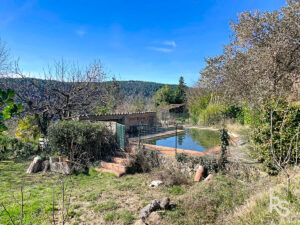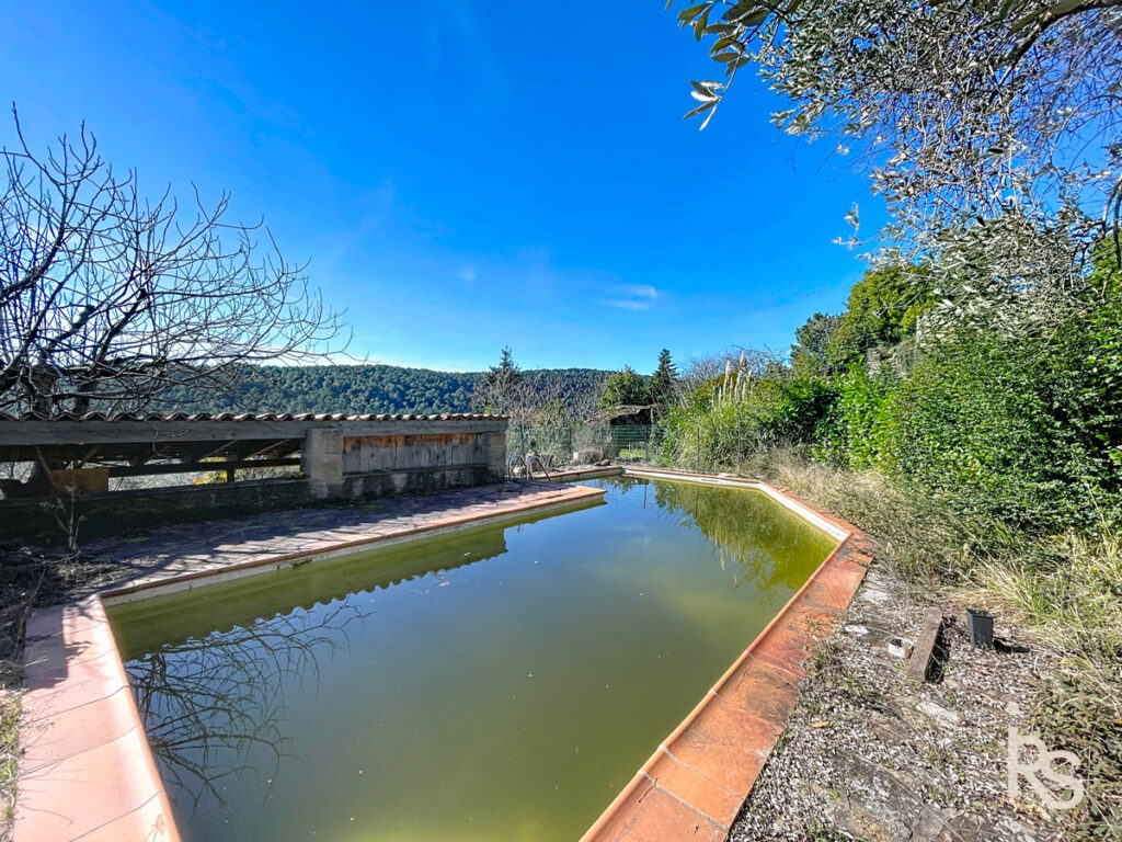 Dit ensemble van twee stenen huizen, verbonden door een overdekte patio, ligt op een prachtige locatie in een klein, typisch en rustig gehucht. Het is aan één kant op een rij en moet volledig worden gerenoveerd. Het uitzicht op het zuiden kijkt uit over de omliggende heuvels in een mediterraan landschap van olijfbomen, pijnbomen en eiken.