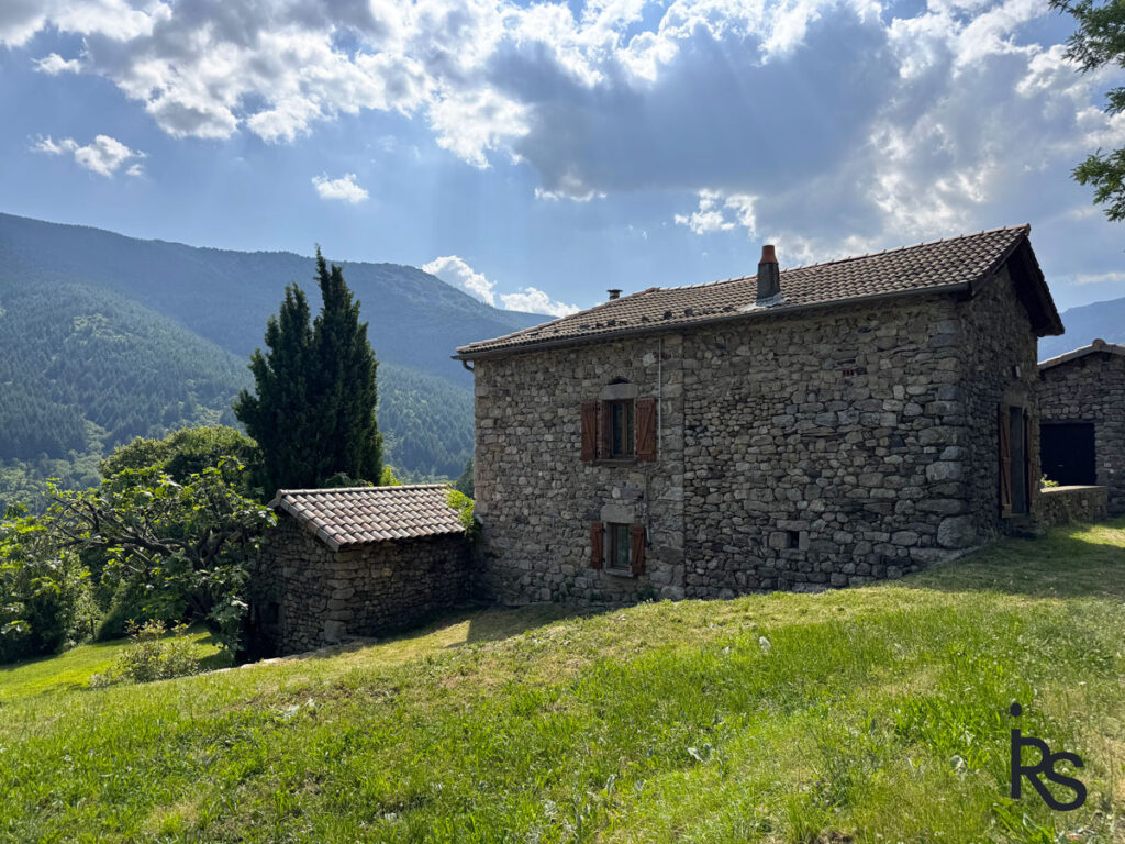 In het Tanargue berggebied: een charmant gerenoveerd stenen huis met een woonoppervlakte van 148 m² en een adembenemend uitzicht, een aangelegde tuin met bomen van 2965 m² en ruimte voor een zwembad op de kavel van het huis. Het bestaat uit een ruime woon-eetkamer, een ingerichte keuken, een toilet en een berging op de begane grond; op de eerste verdieping liggen 4 slaapkamers, waarvan één met doucheruimte, en een badkamer. Het geniet van een grote garage, een werkplaats, verschillende kelders en een schuurtje (oude kastanje drogerij). Verwarming via warmtepomp met als aanvulling een houtkachel en elektrische radiatoren. Aangesloten op de riolering.