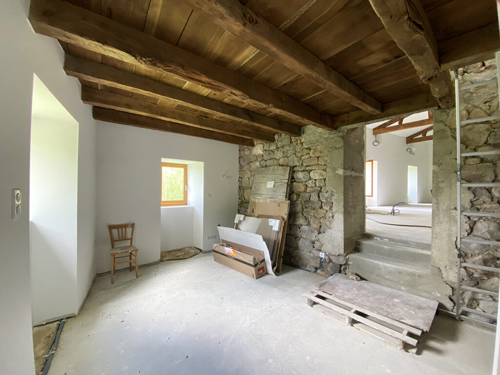 In het TANARGUE berggebied, 40 minuten rijden van Largentière en 10 minuten van Valgorge, een natuurstenen huis daterend uit de 18de eeuw met een totale oppervlakte van 128 m2, begonnen te verbouwen door een architect (nieuw dak, vloeren, ramen, elektriciteit…), met kleine binnenplaats van 142 m2, een tuin van 200 m2, 700 m2 losse percelen land en een prachtig uitzicht op de vallei. Het bestaat uit een grote woonruimte van … met alles klaar voor een nieuwe keuken en een klein terrasje naar de tuin, een slaapkamer, een kamer als bureau met kleedkamer, een nieuwe badkamer met toilet, een oudere badkamer met toilet, een bijgebouw met 2 niveaus van ieder 18 m2 (2 extra slaapkamers mogelijk) een schuur (garage) van 76 m2, houtkachel, dorpswater, en riolering.
