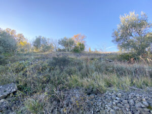 Omgeving LARGENTIERE, 20 minuten rijden ten zuiden van AUBENAS, een bouwkavel van 3560 m2 waarvan ongev. 1/3 oppervlakte bouwrijp, terrasvormig met enkele olijfbomen en een panoramisch uitzicht op het oosten en het zuiden. Rustig gelegen, en de rand van een niet bebouwbaar gebied. Water en elektriciteit niet aangesloten. Stroomnet en waterleiding aan de weg. Septic tank nodig.