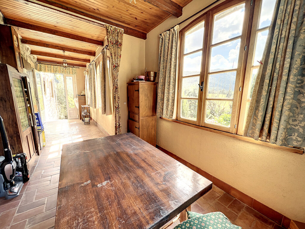 In de buurt van PRADES: gelegen in een klein gehucht, een boerderij van 207 m2 met 1862 m2 aangelegde tuin met zwembad en verhard strand en een prachtig uitzicht op de bergen. Het huis beschikt over een grote woonkamer met kitchenette, een gesloten terras, een woonkamer, 3 slaapkamers en een badkamer, een W.C. en op de tuinniveau, een gewelfde zomerlounge met 2 slaapkamers, een droog toilet, een grote zolder van 3 kamers, 2 grote terrassen, een kleine binnenplaats, kelders, garage. Verwarming per kachel in de open haard, boiler met warmtepomp. Recente septic tank.