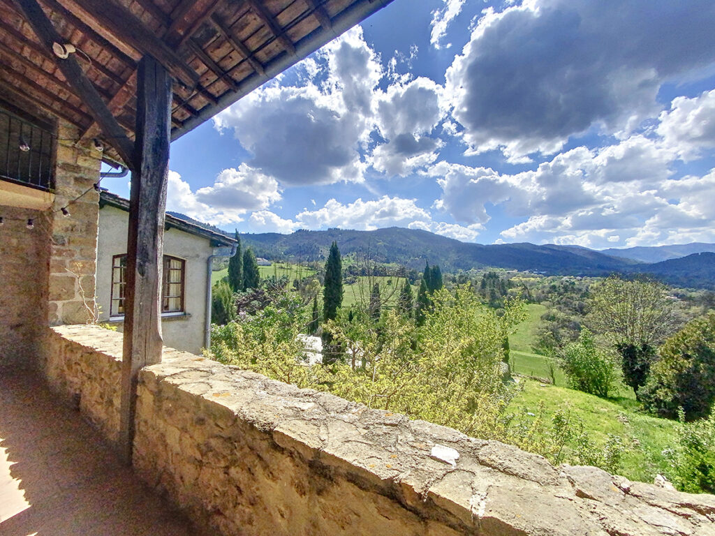 Beschrijving PRADES : een boerderij van 207 m2 met 1862 m2 aangelegde tuin met zwembad en een prachtig uitzicht op de bergen.