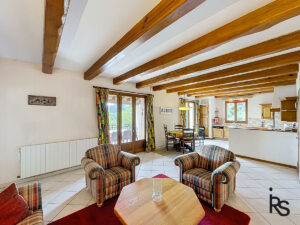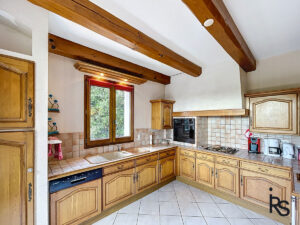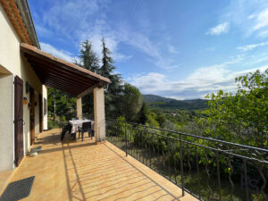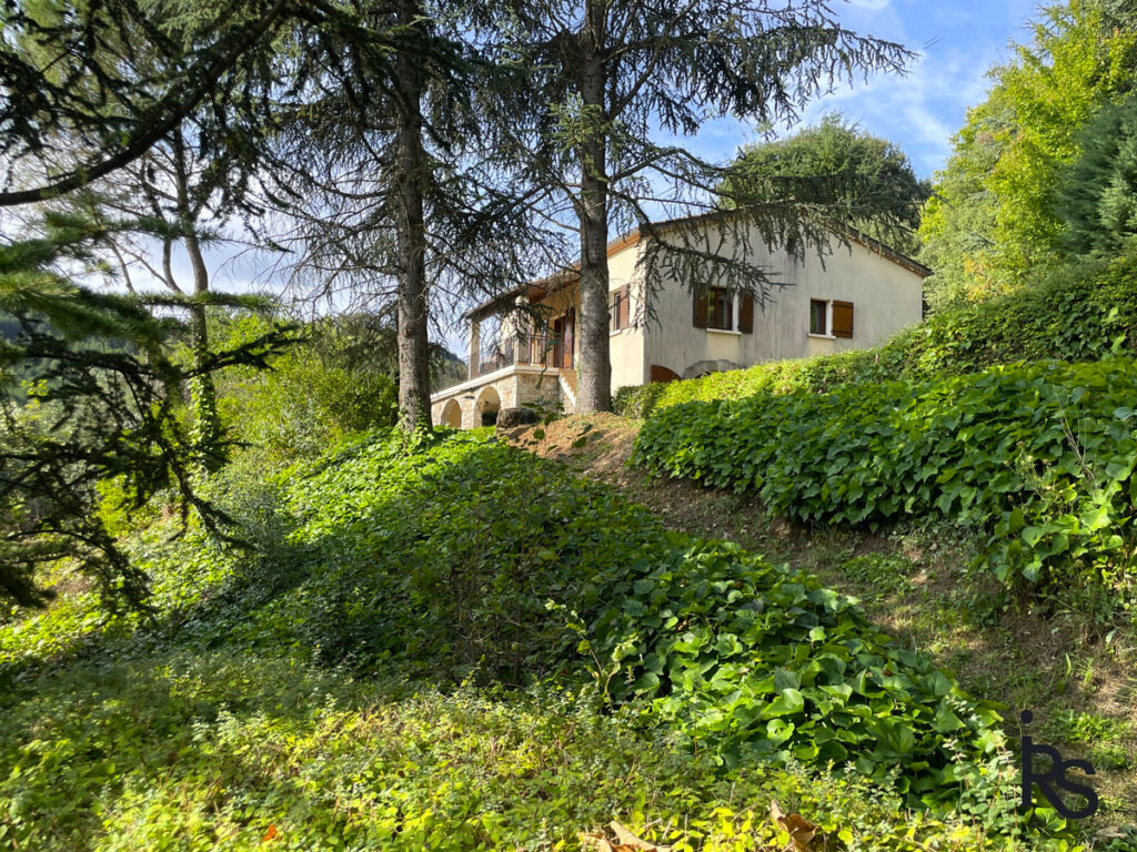 15 minuten rijden van LARGENTIERE, een traditionele villa met een prachtig uitzicht en een groot terras langs 2 gevels, 5612 m2 grond met een aangelegde tuin, 172 m2 woonoppervlakte, met op de begane grond, een appartement met een grote woonkamer-keuken, een slaapkamer met doucheruimte, toilet en een garage van 58 m2; op de eerste verdieping een grote woonkamer-keuken, een kleine salon of bureau, drie slaapkamers, een toilet en een badkamer. Centrale verwarming op stookolie. Individuele riolering.