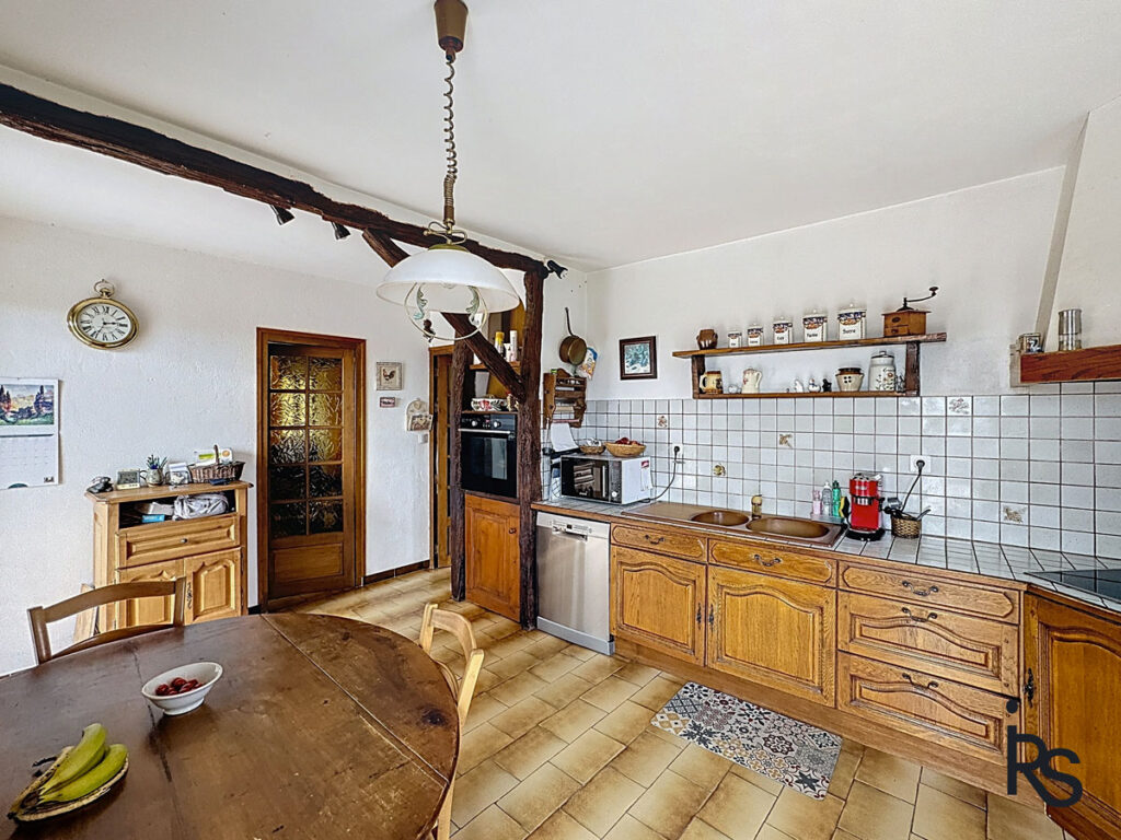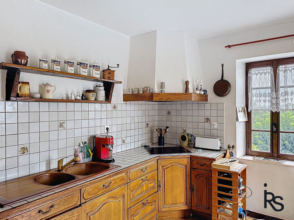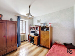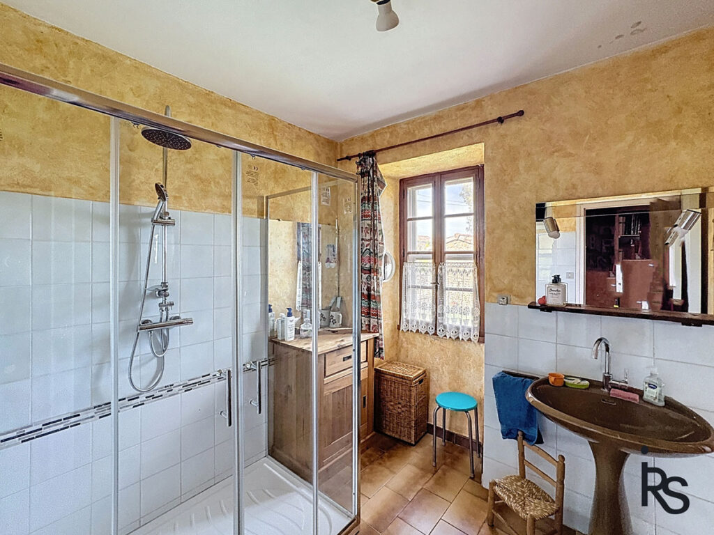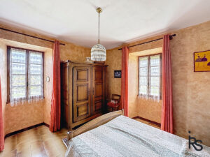 Op de begane grond bevinden zich een grote garage, een kleine kamer die als zomerslaapkamer wordt gebruikt, een gewelfde kelder met een zomerkeuken en een tweede kelder met een aardevloer. Op de eerste verdieping kunt u vanaf een iets hoger gelegen terras genieten van het uitzicht naar het oosten. Een keuken van 16,76 m² en een woonkamer van 36,23 m² komen uit op dit terras. Op dezelfde verdieping bevinden zich een eerste slaapkamer van 11,91 m², een tweede slaapkamer van 12,37 m² met een doucheruimte van 2,24 m², een doucheruimte van 6,49 m², een kleedkamer van 2,84 m² en een apart toilet.