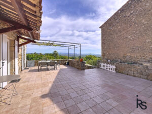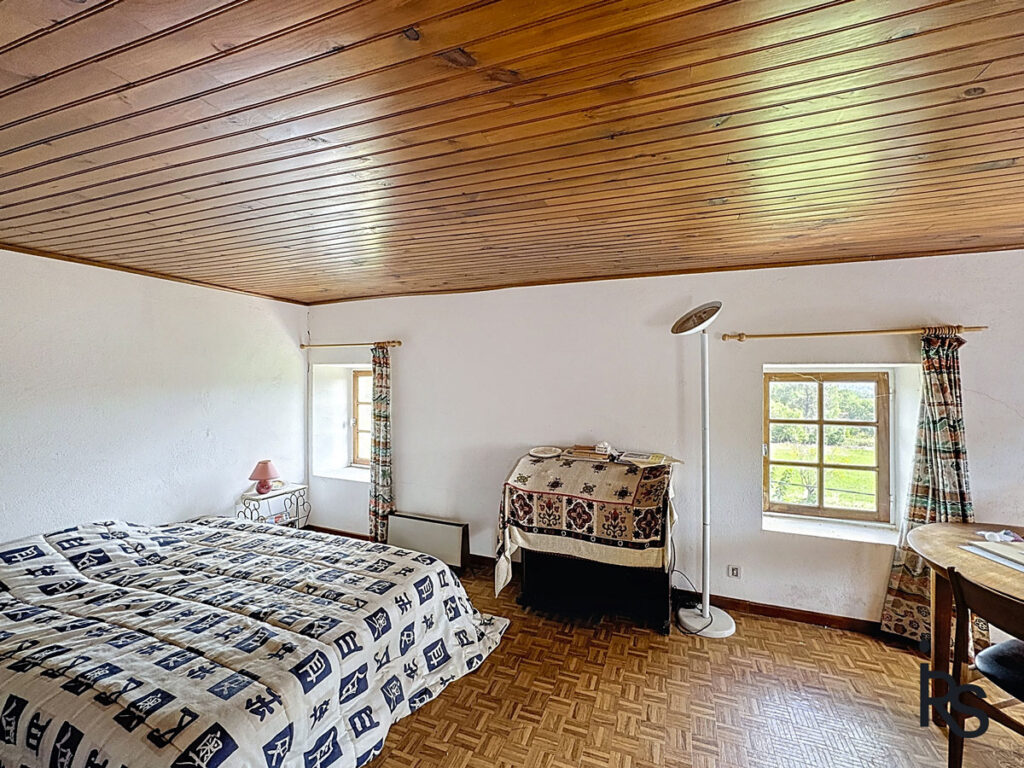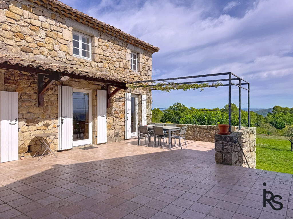 Dit natuurstenenhuis ligt iets buiten een pittoresk dorpje en dicht bij voorzieningen. Het biedt een panoramisch uitzicht en heeft een vlak terrein van 2.833 m².