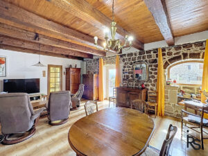 VAL-DE-LIGNE: bij een pittoresk dorpje aan de voet van het Tanargue-massief, een stenen huis met 190 m² woonoppervlakte en 2.833 m² vlak terrein met een panoramisch uitzicht. Dit typisch gebouw op kelders, bestaat op de eerste verdieping uit een zeer groot terras, een woonkeuken, een woonkamer met open haard, twee slaapkamers, waarvan één met een doucheruimte, een kleedkamer, een doucheruimte en een apart toilet; op de tweede verdieping zijn er drie slaapkamers, een doucheruimte met toilet en een zolder. Op de begane grond bevinden zich kelders, waarvan één met een zomerkeuken, een garage en een zomerslaapkamer. Er is een waterput voor het besproeien van de tuin. Centrale verwarming wordt verzorgd door een warmtepomp. Septic tank.