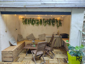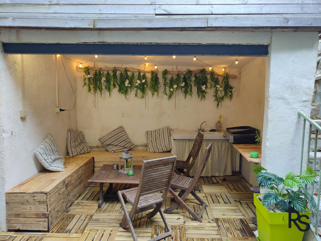 De keuken komt uit op een terras met directe en onafhankelijke toegang tot de straat.