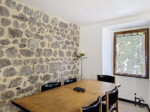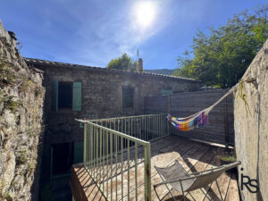VALGORGE: in het centrum van een dynamisch dorpje in het hart van het prachtige Tanargue massief, een gerenoveerd stenen dorpshuis met een woonoppervlakte van 110,24 m² met een kleine binnenplaats, een terras en een gîte met een woonoppervlakte van 67 m² en eigen een terras. Het hoofdgebouw bestaat op de begane grond uit een keuken, een woonkamer, een badkamer met toilet, twee slaapkamers en op de verdieping, uit een badkamer met toilet en twee slaapkamers. In verbinding met het hoofdgebouw bevindt zich een gîte bestaande uit een woonkamer met keukenhoek, twee slaapkamers, een badkamer en een apart toilet. Verwarming door pellet kachel en elektrische radiatoren. Aangesloten op de riolering. Kleine winkels in de buurt.