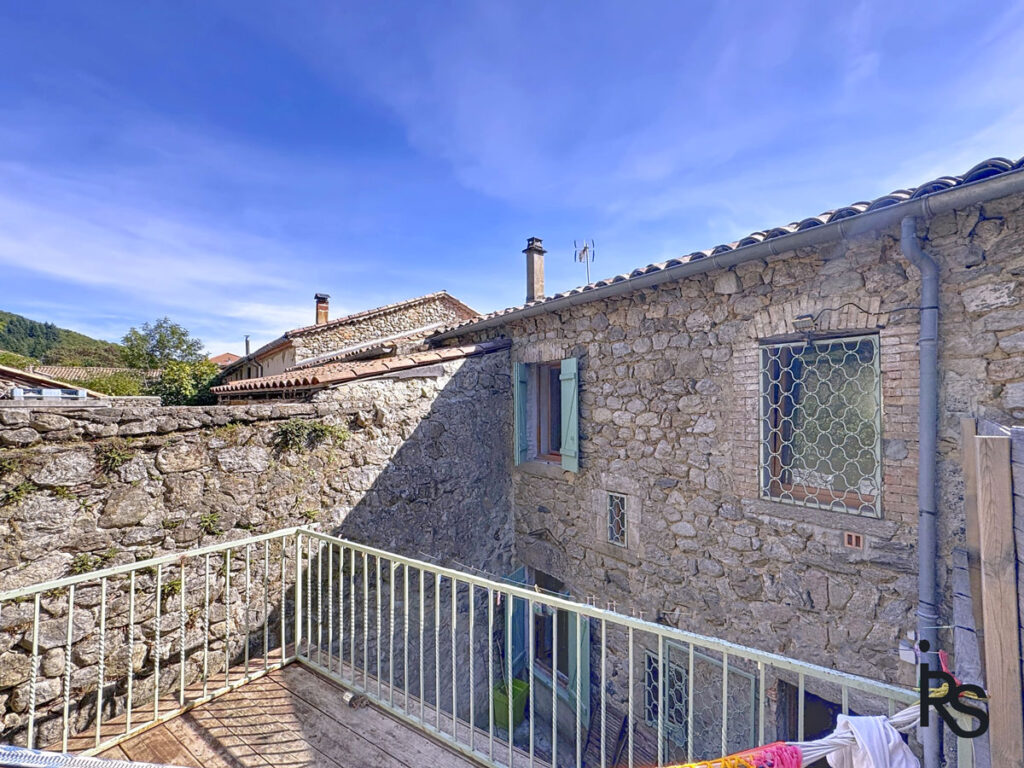 Dit typische huis in de Ardèche, gelegen in een levendig dorpje waar de rivier de Labeaume door de vallei stroomt, heeft twee mooie terrassen en een binnenplaats.